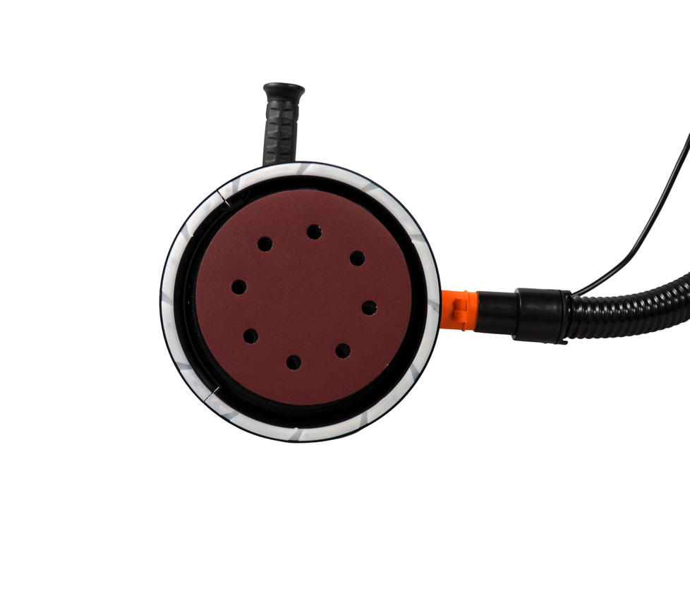 Wypinany element obudowy umożliwia dokładniejsze szlifowanie krawędzi i narożników, czyli miejsc trudno dostępnych dla standardowej okrągłej stopy. Ergonomiczna gumowa rękojeść oraz uchwyt pomocniczy poprawiają stabilność prowadzenia urządzenia i zmniejszają zmęczenie podczas dłuższej pracy. Wytrzymały silnik szczotkowy został zaprojektowany z myślą o pracy pod obciążeniem, co ma szczególne znaczenie przy dużych powierzchniach i intensywnych remontach.