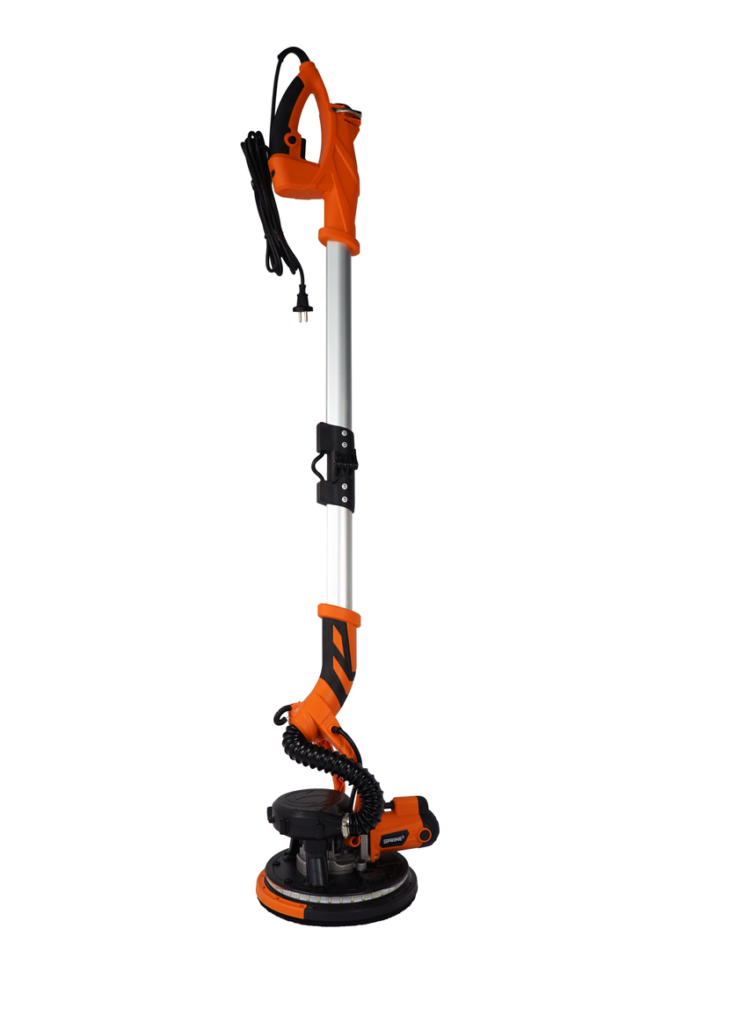 Dzięki regulowanej długości wysięgnika w zakresie 150–200 cm urządzenie umożliwia komfortowe szlifowanie dużych powierzchni, narożników oraz miejsc trudno dostępnych. Regulacja obrotów oraz wbudowany system odsysania pyłu pozwalają dopasować sposób pracy do rodzaju gładzi i etapu obróbki – od wstępnego wyrównywania po dokładne wygładzanie przed malowaniem.
